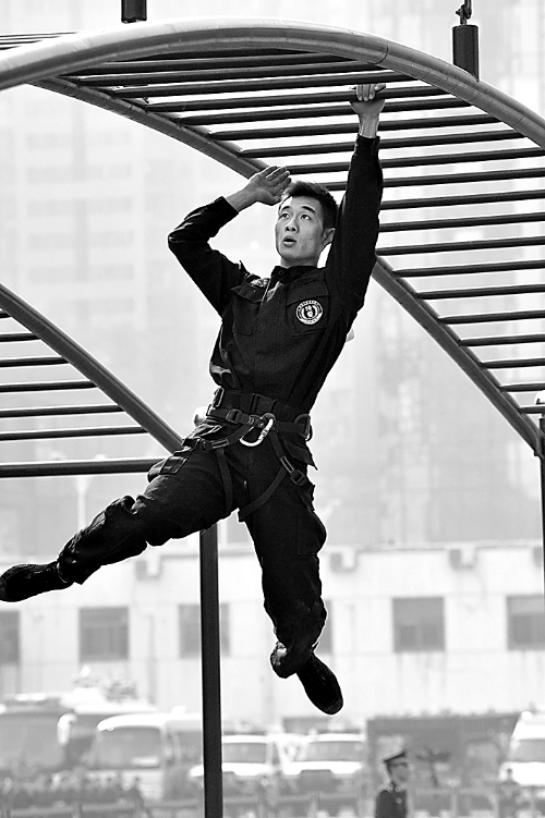 10月18日至19日,來自河南、江西、湖南和湖北的4支公安特警隊72名精英隊員在鄭州進(jìn)行大比武。(劉書亭 攝)