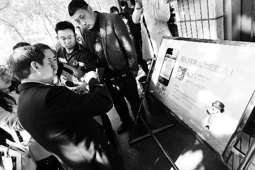 昨日上午,鄭州市中原西路鄭州交巡警二大隊服務(wù)大廳門口,七八名市民圍著一塊宣傳牌。宣傳牌上,有二大隊的微信公共平臺二維碼。