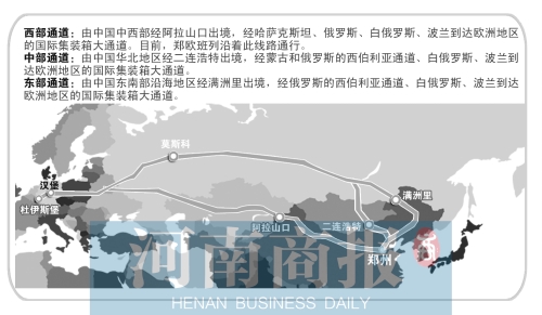 西部通道:由中國中西部經(jīng)阿拉山口出境,經(jīng)哈薩克斯坦、俄羅斯、白俄羅斯、波蘭到達(dá)歐洲地區(qū)的國際集裝箱大通道。目前,鄭歐班列沿著此線路通行。