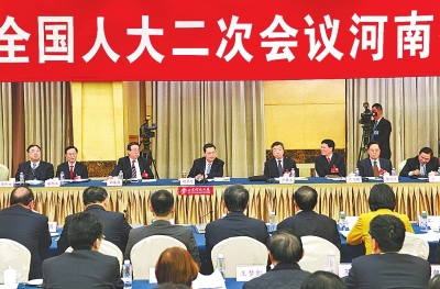 出席十二屆全國人大二次會議的河南代表團(tuán)審議政府工作報告