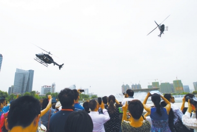 直升機(jī)飛行表演同樣十分精彩