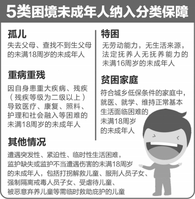 更加注重教育保障!秾嵤┮庖姟穼β鋵崌业慕逃Y助政策和義務(wù)教育階段“兩免一補(bǔ)”政策進(jìn)行了細(xì)化,明確自今年秋季學(xué)期起,將實現(xiàn)困境兒童從義務(wù)教育到高中階段的12年免費教育。