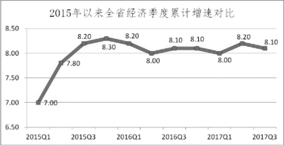 全年增速有望“8%”上運行。今年前三季度全省經(jīng)濟增長8.1%,與上年全年增速持平,比今年一季度高0.1個百分點,比上半年低0.1個百分點。從縱向?qū)Ρ瓤矗沂〗?jīng)濟增速連續(xù)9個季度維持在8.0%以上,并在8.0%~8.3%區(qū)間運行。與全國增速對比看,前三季度全省經(jīng)濟增速高于全國平均水平1.2個百分點,連續(xù)9個季度高于全國平均水平1個百分點以上。