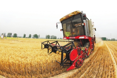 6月3日,農(nóng)民駕駛收割機(jī)在溫縣武德鎮(zhèn)西冷村田間收割小麥。該縣組織1000余臺(tái)聯(lián)合收割機(jī)參加機(jī)收會(huì)戰(zhàn),確保小麥適時(shí)收割。徐宏星攝