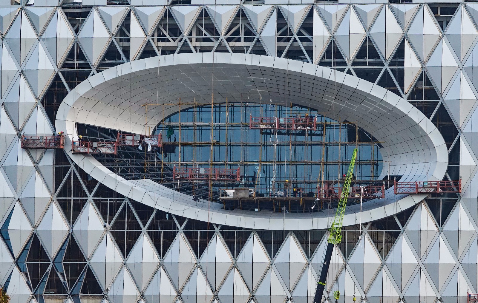 市民活動(dòng)中心的外幕墻已近入最后的收尾階段