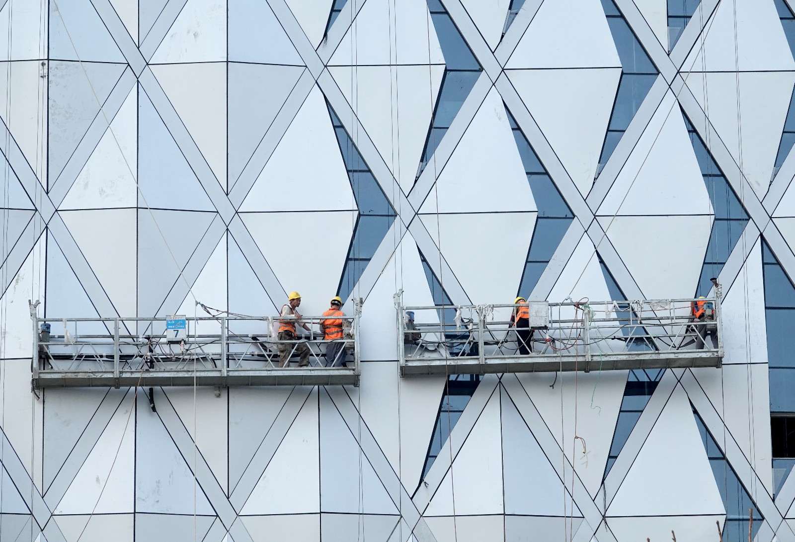 工人在博物館的屋頂施工