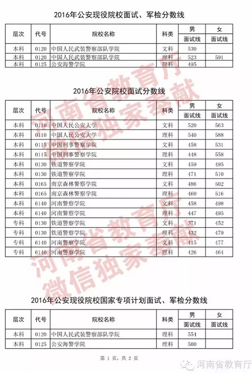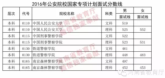 2016年河南省普通高招公安及公安現(xiàn)役院校面試分?jǐn)?shù)線