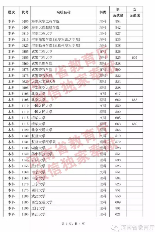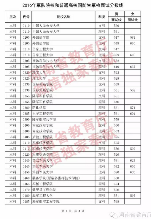 2016年河南省普通高招軍隊(duì)院校和普通高校國(guó)防生軍檢面試分?jǐn)?shù)線