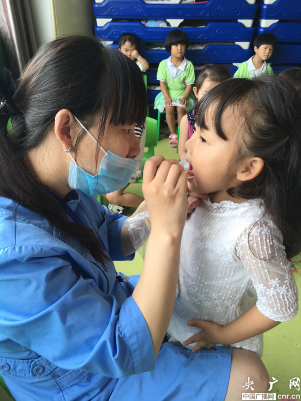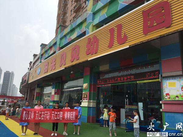 央廣網(wǎng)河南分網(wǎng)消息 2016年7月5日,鄭州市二七區(qū)元仁口腔門診部6名醫(yī)護(hù)人員,驅(qū)車來(lái)到管城區(qū)快樂(lè)貝貝幼兒園,為快樂(lè)貝貝幼兒園的學(xué)生義診,受到小朋友們的熱烈歡迎。