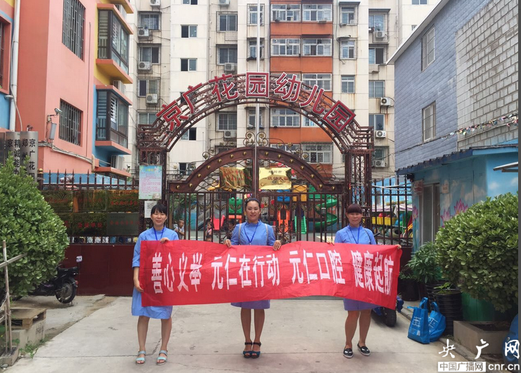 央廣網(wǎng)河南分網(wǎng)消息 2016年7月13日,鄭州市二七區(qū)元仁口腔門診部6名醫(yī)護(hù)人員,驅(qū)車來到京廣花園幼兒園,為京廣花園幼兒園的學(xué)生義診,受到小朋友們的熱烈歡迎。