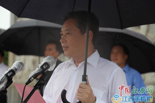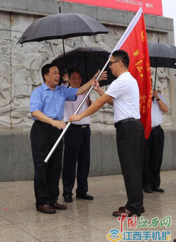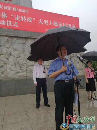 啟動(dòng)儀式上,任賢良為采訪團(tuán)授旗并宣布活動(dòng)正式啟動(dòng)。他說,80多年前,中央紅軍從贛南這塊浸染著革命先烈鮮血的紅土地,開始了舉世聞名的二萬五千里長征。今年7月18日,習(xí)近平總書記在參觀寧夏回族自治區(qū)三軍會(huì)師紀(jì)念館時(shí)曾提出,長征永遠(yuǎn)在路上。我們要繼承和弘揚(yáng)好偉大的長征精神。緬懷先烈、不忘初心,走好新的長征路。在未來兩個(gè)月中,滿懷著對(duì)革命先烈的崇敬之情,中央網(wǎng)信辦將組織15個(gè)省區(qū)市網(wǎng)信辦,以及部分中央新聞網(wǎng)站、地方新聞網(wǎng)站、商業(yè)網(wǎng)站和新媒體的數(shù)百名采編人員,沿著紅軍的足跡,用文字、圖片和影像等形式,充分展示紅軍長征勝利的光輝歷史和英雄壯舉,充分展示長征沿線各地經(jīng)濟(jì)社會(huì)發(fā)展的輝煌成就和人民群眾的幸福生活。陳俊卿代表省委、省政府向出席活動(dòng)的中央網(wǎng)信辦領(lǐng)導(dǎo)、采訪團(tuán)的媒體朋友表示熱烈歡迎。他說,江西是一塊具有光榮革命傳統(tǒng)的紅土地。今天,我們站在贛南這片紅色沃土上追憶長征,就是為了銘記歷史、不忘初心,繼續(xù)前進(jìn)。衷心希望各位記者朋友在江西期間,多走走、多看看、多聽聽,用有深度、有力度、有溫度的全媒體報(bào)道,將江西決戰(zhàn)同步全面建成小康的精彩故事分享給全國的朋友們,為江西鼓勁加油,為江西點(diǎn)贊喝彩。