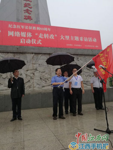 8月23日上午,由中央網(wǎng)信辦主辦的“長征路上奔小康”網(wǎng)絡(luò)媒體“走轉(zhuǎn)改”大型主題采訪活動(dòng)啟動(dòng)儀式,在于都縣中央紅軍長征出發(fā)地紀(jì)念園舉行。