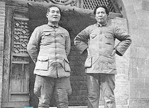 (紅一、紅四方面軍會師后,毛澤東和張國燾合影)