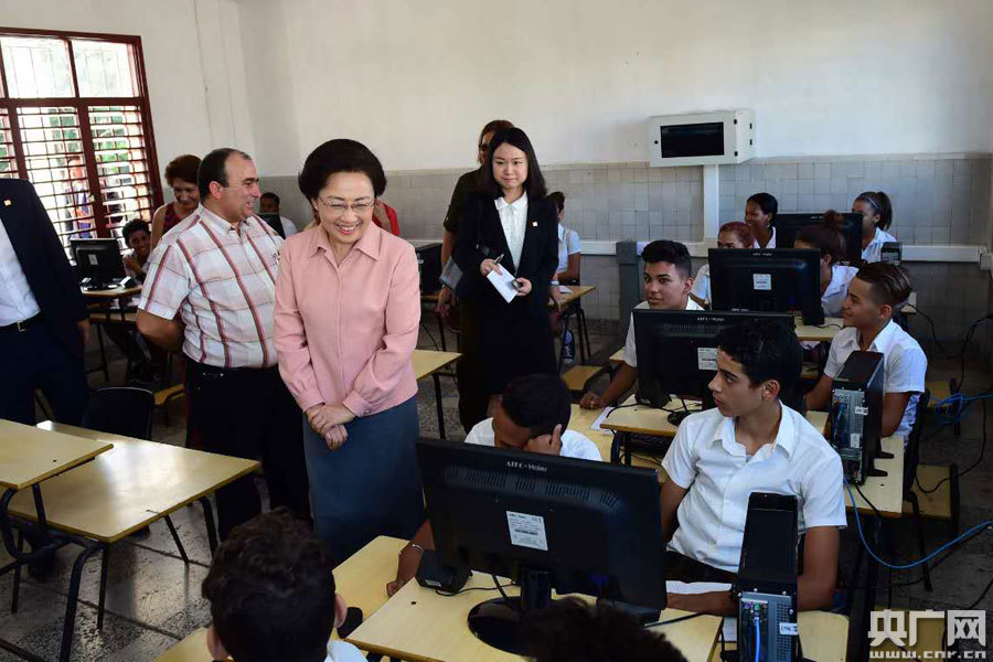 央廣網河南分網消息 24日下午,李克強總理夫人程虹在古巴教育部長貝拉斯克斯陪同下訪問奧斯瓦爾多-埃雷拉技術學校。程虹來到學生們中間,親切詢問大家學習情況,欣賞同學們表演的精彩小節(jié)目,并向校方捐贈了電腦、電教器材等設備。程虹鼓勵學生們努力學習一技之長,報答父母養(yǎng)育之恩,做對社會和國家有用的人。貝拉斯克斯代表古巴政府和學校表示感謝。(該校以古巴革命烈士奧斯瓦爾多-埃雷拉命名,培養(yǎng)15歲至17歲的學生,畢業(yè)后可進入大學繼續(xù)學習或直接步入社會工作。)(記者馬喆)