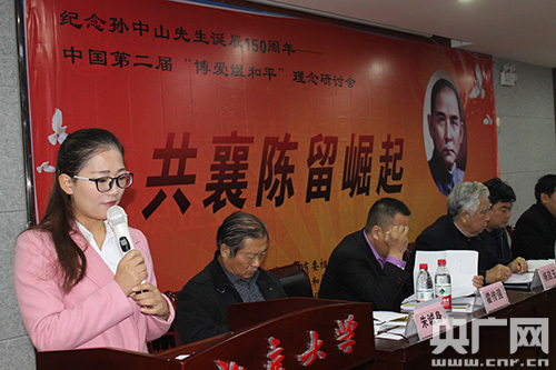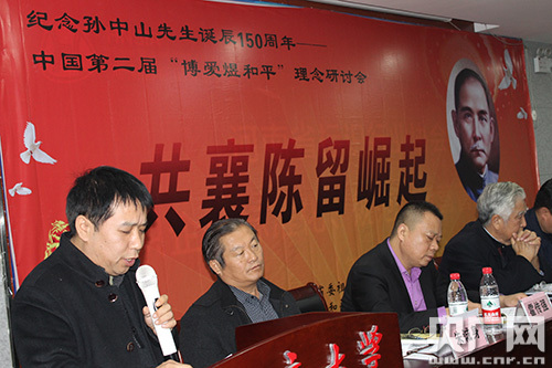 央廣網(wǎng)河南分網(wǎng)消息 11月12日是一代偉人孫中山先生誕辰150周年紀念日。在鄭東新區(qū)河南商會大廈17樓會議室,紀念孫中山誕辰150周年——中國第二屆“博愛煜和平”理念研討會“共襄陳留崛起”如期舉辦,圓滿成功。