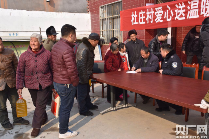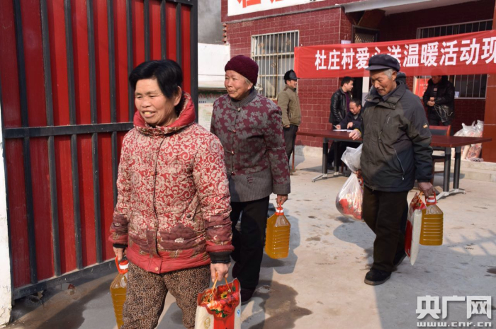 央廣網(wǎng)河南分網(wǎng)1月24日消息 “各位村民,今天咱村在村室開展‘關(guān)愛(ài)老人,奉獻(xiàn)愛(ài)心’活動(dòng),請(qǐng)60歲以上老人以家庭為單位到村室領(lǐng)取新年禮物,請(qǐng)已領(lǐng)取的村民相互轉(zhuǎn)告,望村民們抓緊時(shí)間到村室領(lǐng)取!”1月23日,郟縣渣園鄉(xiāng)杜莊村負(fù)責(zé)人在高音喇叭里喊到。