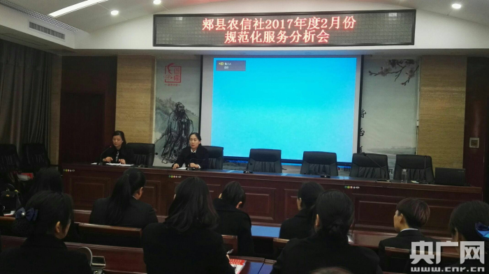 央廣網(wǎng)河南分網(wǎng)3月9日消息 為進(jìn)一步強(qiáng)化服務(wù)意識(shí)、提高服務(wù)質(zhì)量,推動(dòng)郟縣聯(lián)社規(guī)范化服務(wù)工作再上新臺(tái)階,3月7日下午,郟縣聯(lián)社在南二樓會(huì)議室召開(kāi)2017年二月份規(guī)范化服務(wù)分析會(huì)。運(yùn)營(yíng)管理部同各社主任、網(wǎng)點(diǎn)負(fù)責(zé)人、大堂經(jīng)理及第三方公司共60余人參加了會(huì)議。