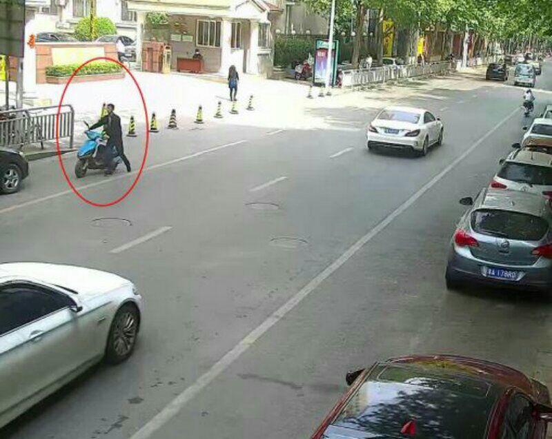 辦案民警告訴記者,上午10時30分許,他們在鄭州市經(jīng)八路上的某家屬院內(nèi),成功抓獲一個盜竊電動車團(tuán)伙后,正準(zhǔn)備帶涉案人員回辦案單位時,一名黑衣男子突然向他求助,希望他能幫忙推一下電動車。當(dāng)時,他也沒多想,案子也已經(jīng)辦完,又是力所能及,便立即上前幫忙。