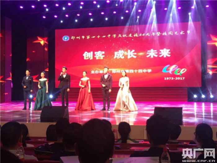 央廣網(wǎng)河南分網(wǎng)5月5日消息 (本網(wǎng)特別報道組)“四十四年潤物情,驀然回望滿芳華。”今天下午,鄭州市第四十四中學(xué)在省人民大會堂隆重舉行以“創(chuàng)客·成長·未來”為主題的慶祝建校44周年暨第五屆校園文化藝術(shù)節(jié)活動,家長、離退休老教師、歷屆校友、友鄰單位嘉賓和在校師生近3000人齊聚一堂。