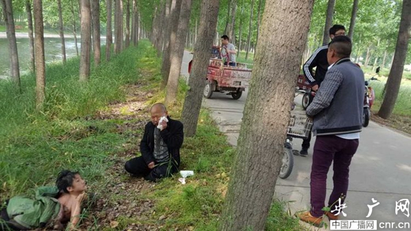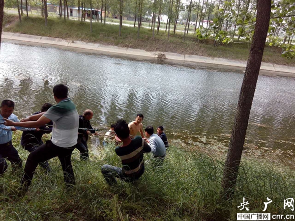 央廣網(wǎng)河南分網(wǎng)5月9日消息 5月8日下午3時(shí)許,許昌市建安區(qū)國稅局的常寶強(qiáng)同志正在椹澗鄉(xiāng)時(shí)莊村開展扶貧工作。突然,他聽到不遠(yuǎn)處傳來急切的呼叫救命聲和小孩的哭聲。常寶強(qiáng)隨著傳來的聲音望去,發(fā)現(xiàn)穎汝干渠時(shí)莊橋東側(cè)100米處有一輛三輪車翻入河中。于是,常寶強(qiáng)拔腿就向事發(fā)地點(diǎn)飛奔而去。他一邊跑一邊大聲呼叫附近一起在時(shí)莊扶貧的其他駐村干部,建安區(qū)國稅局的婁紅偉、鄒改清、王紅敬、李國軍等駐村干部聞?dòng)嵑笱杆俜畔率诸^工作,帶上路邊能抓到的掃帚、繩索、木棍等工具迅速奔向河邊。說時(shí)遲那時(shí)快,只見常寶強(qiáng)一行人奮不顧身,縱身跳入河中,把落水兒童拉到岸邊,交給村民抱到安全地帶,又奮力將精疲力盡的落水老人拉上岸。