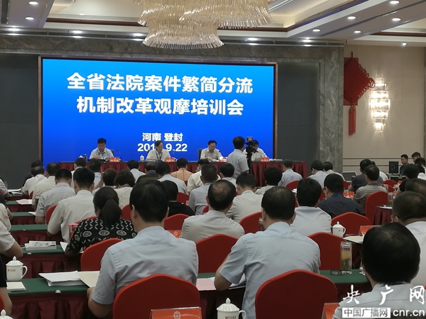 央廣網(wǎng)河南分網(wǎng)9月23日消息 (本網(wǎng)特別報(bào)道組)9月22日,全省法院案件繁簡分流機(jī)制改革觀摩培訓(xùn)會(huì)在登封市召開。會(huì)議的目的是貫徹落實(shí)全國法院案件繁簡分流機(jī)制改革工作推進(jìn)會(huì)及全國法院繁簡分流和調(diào)解速裁工作培訓(xùn)會(huì)精神,促進(jìn)全省法院案件繁簡分流機(jī)制改革均衡發(fā)展。省法院黨組書記、院長張立勇在會(huì)前對(duì)全省法院繁簡分流機(jī)制改革工作作出批示,省法院黨組副書記、副院長劉曉云作重要講話,最高法院司改辦調(diào)研員楊建文應(yīng)邀出席會(huì)議并講話,省法院審委會(huì)專職委員、院長助理王韶華主持會(huì)議,省法院立案庭、審管辦、民一庭、信息處、研究室的主要負(fù)責(zé)同志,各中級(jí)法院分管院領(lǐng)導(dǎo)、立案庭、審管辦負(fù)責(zé)同志和基層法院院長代表參加會(huì)議。