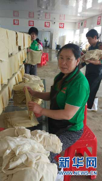 黎賢菊是羅山縣明珠農(nóng)業(yè)有限公司鐵鋪豆腐廠的一名普通女工!凹依5口人,負(fù)擔(dān)挺重的。”她一邊麻利地做著千張豆腐,一邊介紹家里的情況,“女兒在鄭州上大學(xué),每月上千塊,兒子上小學(xué),家里開(kāi)銷(xiāo)每月也得一二百,大伯子沒(méi)有成家,老公打個(gè)零工,有一晌沒(méi)一晌的,一年下來(lái),家里的收入也就2萬(wàn)塊左右,現(xiàn)在來(lái)豆腐廠打工,算是家里的一點(diǎn)兒貼補(bǔ)吧!
