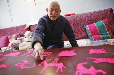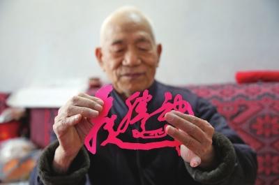“這些都是我自己琢磨著剪的,有十二生肖,有象形字。快過(guò)年了,希望這些剪紙給大家添添喜氣兒!苯衲85歲的老人白由祥笑著說(shuō)。近3年來(lái),老人花了不少心思鉆研剪紙,剪出了不少好看的作品,社區(qū)的鄰居們都搶著要他的作品。老人的代表作“老翁騎驢”由10個(gè)字組成,看到的人都拍手叫絕。