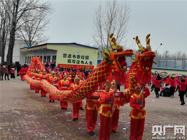 早上9:00,文藝展演在熱鬧的開(kāi)場(chǎng)舞《火火的中國(guó)火火的時(shí)代》中正式拉開(kāi)了序幕,歡快的旋律響徹校園,只見(jiàn)演員們個(gè)個(gè)身著盛裝翩翩起舞展現(xiàn)風(fēng)采,揮舞著手中的彩帶和燈籠,瞬間點(diǎn)燃了現(xiàn)場(chǎng)觀眾的熱情。隨著河村腰鼓隊(duì)的《舞天動(dòng)地》、周莊舞蹈隊(duì)的《吉祥中國(guó)年》、小賀莊舞龍隊(duì)的《舞龍小品》和徐莊嗩吶的《恭喜發(fā)財(cái)》等節(jié)目的演出,活動(dòng)迎來(lái)一波又一波的高潮,熱情洋溢的演出感染著現(xiàn)場(chǎng)所有觀眾,掌聲、笑聲、歡呼聲此起彼伏。