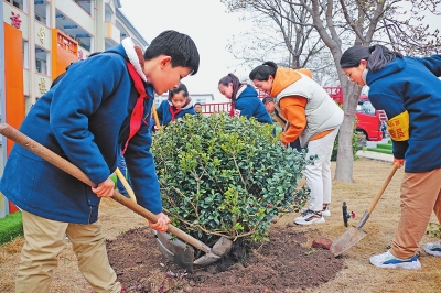 3月11日,許昌市古槐街小學的師生們開展“綠滿校園我添春色”植樹護綠活動。宋大鵬攝