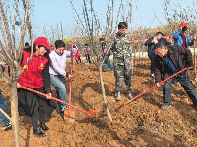 3月12日,南陽市文學藝術(shù)界聯(lián)合會60余名文藝工作者在臥龍區(qū)植下一株株樹木,裝扮美麗家園。杜思高攝