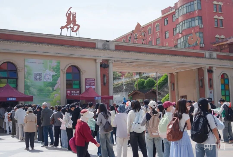 清明假期,雞公山景區(qū)外,游客排隊入園(央廣網(wǎng)發(fā) 浉河區(qū)委宣傳部供圖)