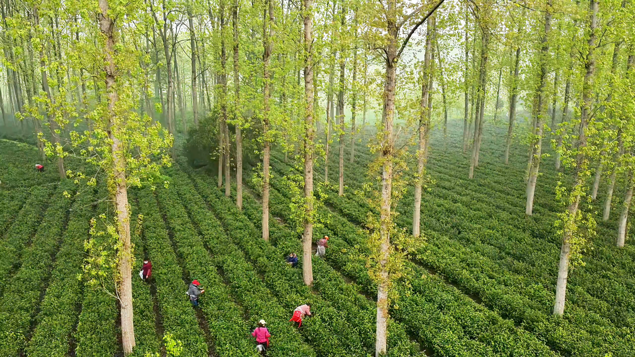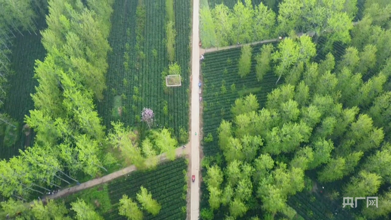 林下茶園航拍(央廣網(wǎng)發(fā) 潢川縣委宣傳部供圖)