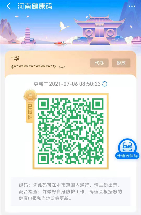 凡在河南省內(nèi)接種了新冠疫苗的居民,登錄“豫事辦”支付寶小程序,打開健康碼,即可解鎖集合了少林寺、金鐘罩等元素的健康碼“新皮膚”。暫未接種新冠疫苗的居民,如需進行疫苗接種,可以進入“豫事辦”首頁新冠疫苗接種專區(qū),提前預(yù)約建檔,接種時可出示給醫(yī)生,大大減少等待時間;已接種新冠疫苗的居民如需查詢疫苗接種情況,也可在專區(qū)內(nèi)點擊“新冠疫苗接種記錄查詢”查看疫苗接種情況。