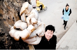 市林業(yè)局野生動植物保護處處長尚光鑄說,生長在樹上的6種有腿蘑菇和6種無腿蘑菇,照片上的蘑菇像青蘑,屬于無腿那種。樹上生長的野蘑,建議市民不要亂吃。去年山東省有位老太太,就因采食樹上的蘑菇中毒身亡。 。ㄊ紫浾 徐富盈/文 記者 周甬/圖)