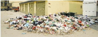 當(dāng)前,我市創(chuàng)衛(wèi)活動(dòng)開展得如火如荼,而這個(gè)小區(qū)卻長(zhǎng)期存在衛(wèi)生死角無(wú)人過問。隨著盛夏的到來(lái),氣溫不斷攀升,垃圾山給人們的生活帶來(lái)不便,也給人們的健康帶來(lái)不安全隱患,希望有關(guān)部門能夠看一看、認(rèn)真抓一抓。 (記者 郝 光 文/圖)