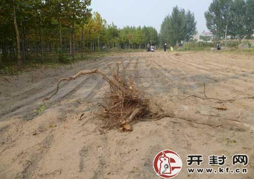 為了查明真相,開(kāi)封市園林綠化處向市森林公安局報(bào)了案。在被毀林地東側(cè)的一處院子里,開(kāi)封市園林綠化處工作人員和森林公安局民警發(fā)現(xiàn)了數(shù)十棵被連根拔起的法國(guó)梧桐,但院子里沒(méi)有人。