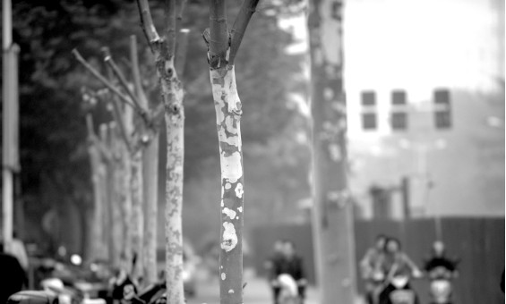記者數(shù)了數(shù),一共是24棵法桐,好像靦腆的小伙子站在路邊。市綠化處楊永青介紹說,這些法桐規(guī)格統(tǒng)一,都是高約3.5米,胸徑15厘米左右,樹齡20年左右!跋啾纫郧胺ㄍ┑拇笮〔灰,顯得更整齊!