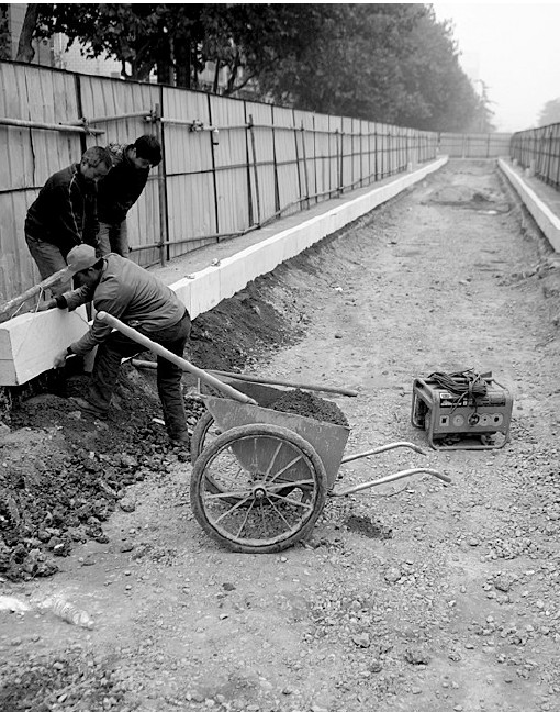 除了已栽植的法桐,昨天下午在建設(shè)路與桐柏路交叉口向西的路北,市政部門正在現(xiàn)場施工恢復(fù)因地鐵施工占用的花壇和綠地。在道路的斜對面,另一處的花壇正在修建中,幾名工人用灰白色側(cè)石搭建了長約40米、寬約4米的花壇,以便恢復(fù)綠地。