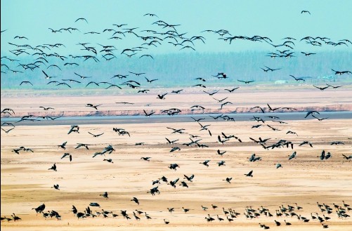 黃河濕地吸引大批候鳥駐足