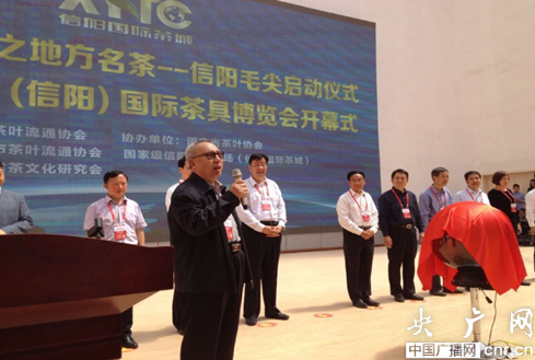 河南省茶文化研究會會長亢崇仁宣布2015年中國(信陽)茶具博覽會開幕