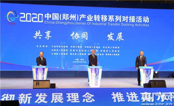 央廣網(wǎng)鄭州10月15日消息(記者 汪寧 王勇生)10月15日上午,2020中國(鄭州)產(chǎn)業(yè)轉(zhuǎn)移系列對接活動在鄭州國際會展中心開幕。