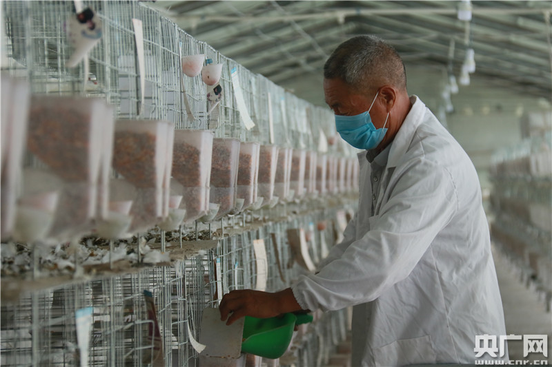 央廣網(wǎng)駐馬店7月26日消息(記者王勇生)“俺現(xiàn)在的收入比外出務工的收入翻了十倍還多,家里的貧困帽早就摘掉了!現(xiàn)在既能照顧好父母孩子,還不耽誤掙錢,這生活好哩很!過完年俺就準備買車,給家里的房子再翻蓋一下。”正在鴻鵠鴿業(yè)專業(yè)養(yǎng)殖合作社的鴿棚內(nèi)給鴿子喂食的河南駐馬店確山縣李新店鎮(zhèn)潘集鄉(xiāng)的村民吳廣勝說起現(xiàn)在的生活笑的合不攏嘴。目前,他承包了合作社的6000余只鴿子,年收入在20萬元以上。吳廣勝與許多同村的村民一樣,是確山縣產(chǎn)業(yè)扶貧路上的受益者。