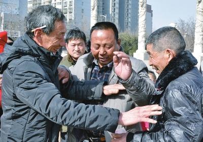 今年2月8日,經(jīng)澠池警方再次尋找,郝俊時的家人終于找到。2月11日,其家人從山東趕來。兩個“老朋友”最后一次吃飯、合影、拉手說話。臨行前,王正義塞了500塊錢給郝俊時,郝俊時則撲通一聲跪在地上,淚流滿面……