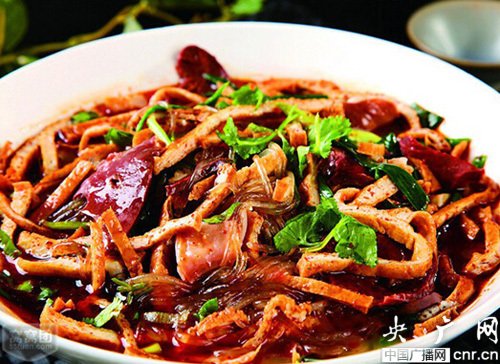 豆腐粉條菜還可以針對個(gè)人口味不同,加入羊血、羊肉、羊雜等,口味更是鮮美,再撒上無論在任何季節(jié)都不會用別的菜代替的香菜和小香蔥,再加入一些饞人的辣椒油,一碗碗香噴噴的正宗豆腐粉條菜出鍋了。只聽聽口水就要留下來了,難怪食客們總會邊吃邊贊嘆:“郟縣豆腐菜,堪稱一絕!”