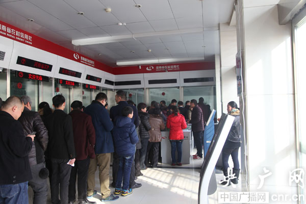居民在郟縣農(nóng)信社排隊兌換羊年紀念幣