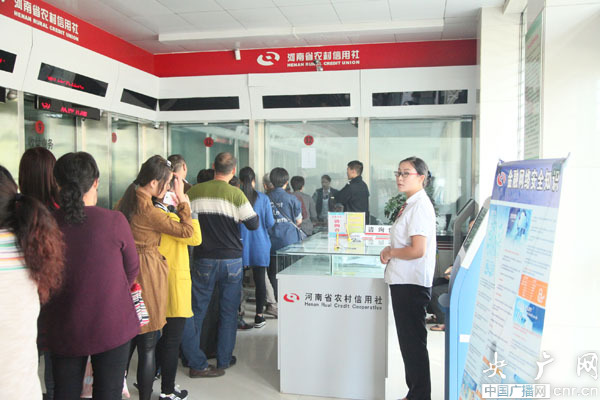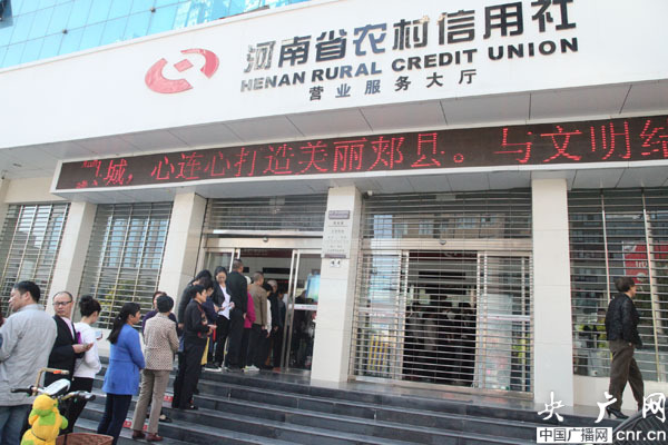 居民排隊(duì)在郟縣農(nóng)信社 兌換抗戰(zhàn)勝利70周年紀(jì)念幣