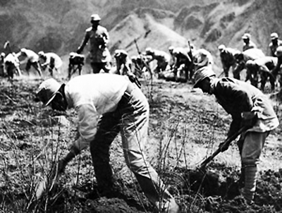 太行軍區(qū)部隊(duì)指戰(zhàn)員在一起開(kāi)荒種地