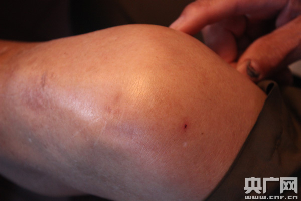 鐘飛的左腿上,除了膝蓋處留下的傷疤外,小腿上還有一處手掌心大小向下凹著的傷疤,那是因?yàn)樵谝淮螒?zhàn)斗中被扯掉了皮。