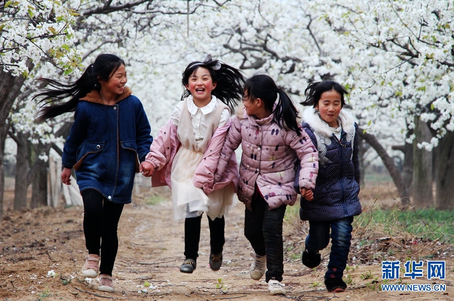 4月5日,幾個(gè)小朋友在河南省內(nèi)黃縣東莊鎮(zhèn)梨園內(nèi)賞花玩耍。