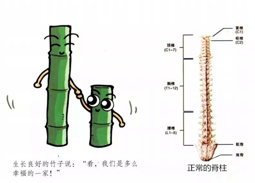 正常的脊柱,像竹子一樣一節(jié)一節(jié)的,從后面看都是直直的!